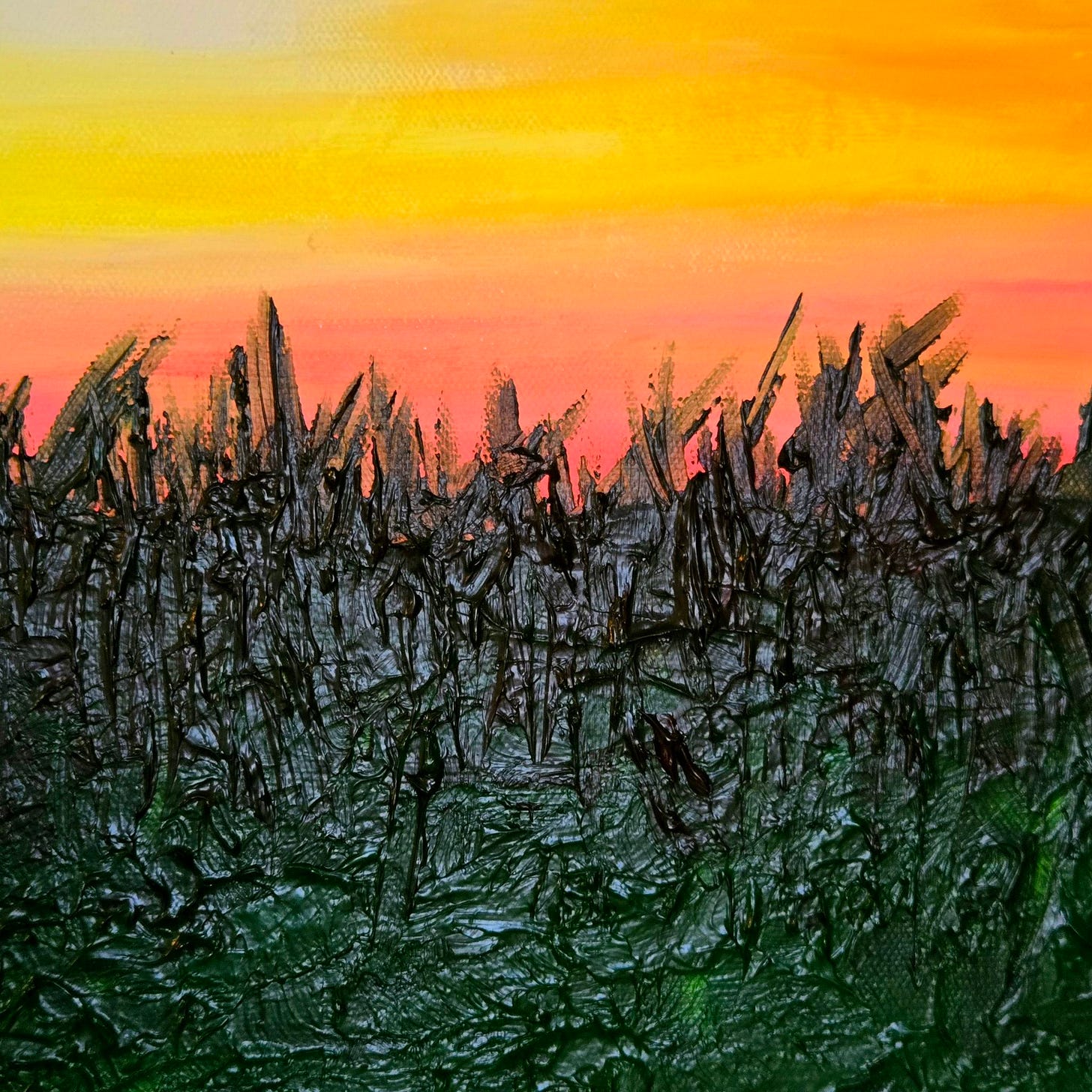I wish I had more to report on, but I wasn’t here (mentally) last week. When I did check back in, I made some strides on the acrylic painting I started. I finally took a dive into the jar of impasto I bought for this project.